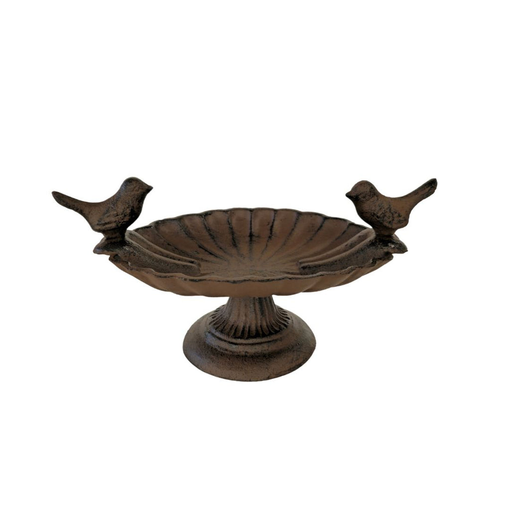 The vintage/rustic finish gives it that “old-world garden brunch spot” vibe—a decorative treat even before the first peck!